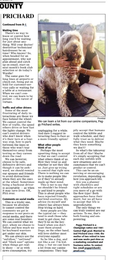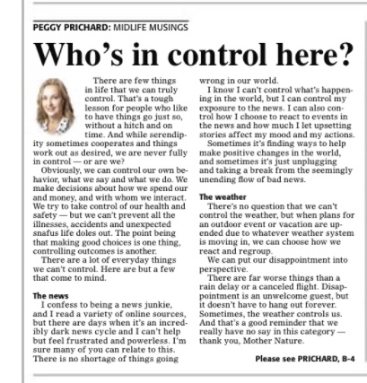 I’ve posted most of the columns on this blog but also wanted to keep a visual record of some of my published articles. Sort of a virtual “scrap-book.” For me, writing is a form of expression and creativity.