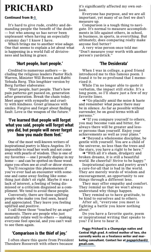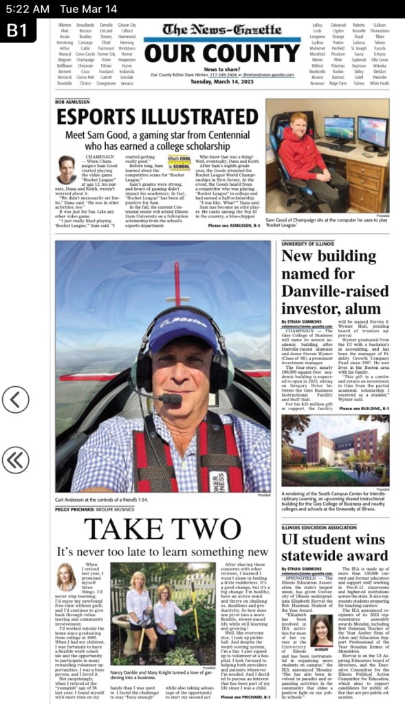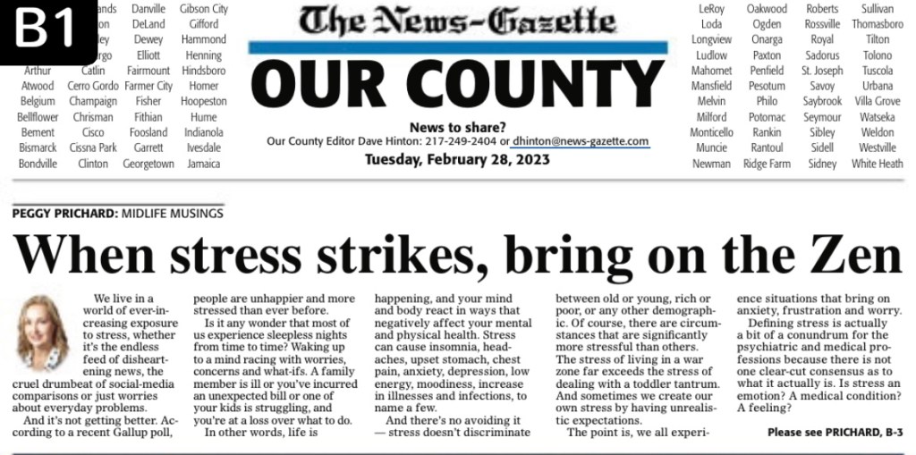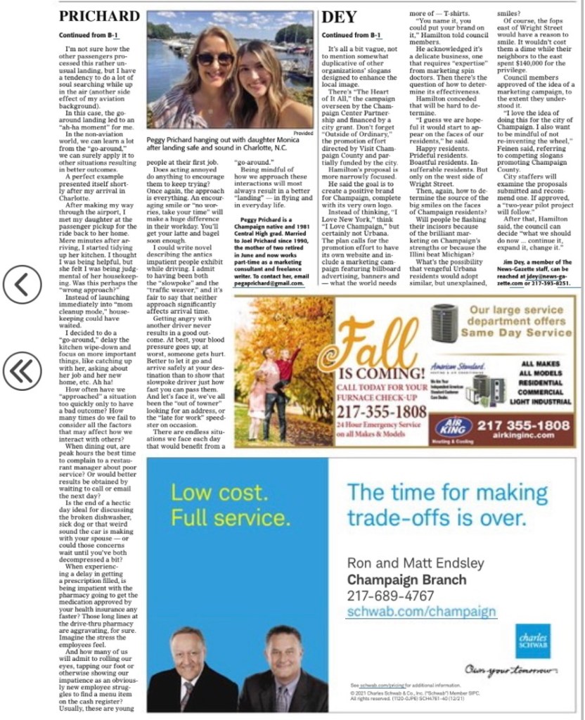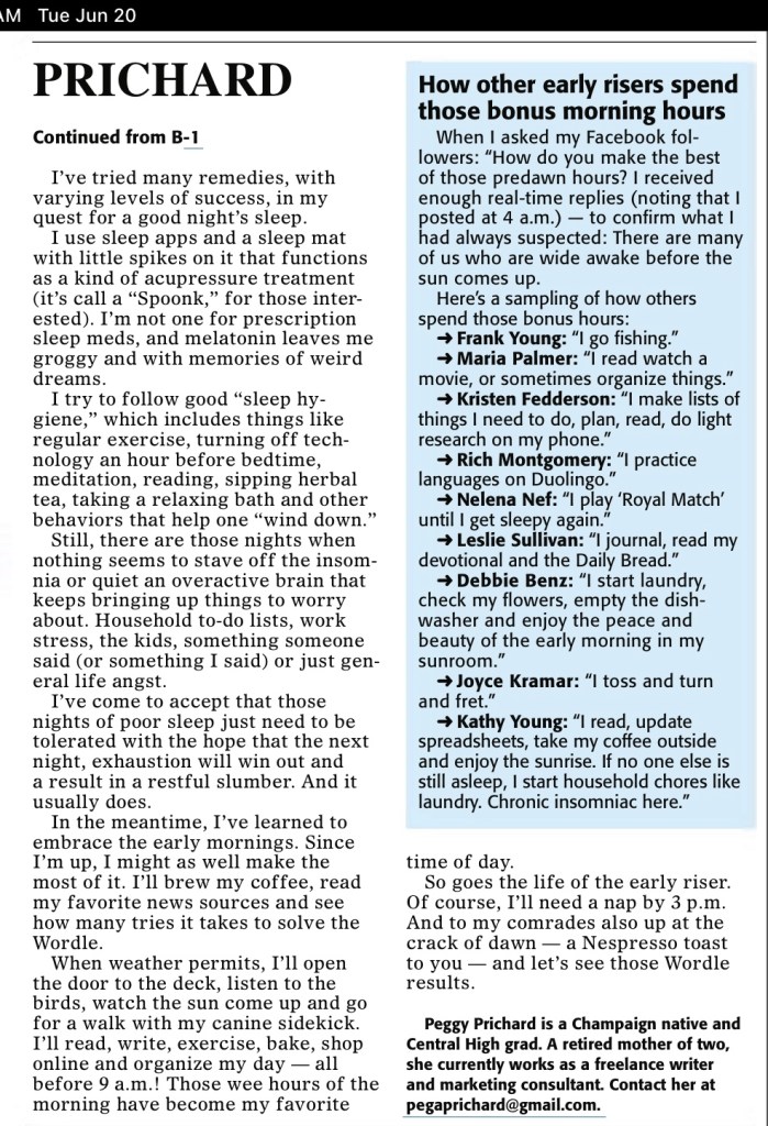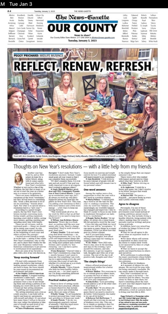 I was given the wonderful opportunity to contribute a column in my hometown newspaper (The News Gazette) starting in 2022. This has been a great way to practice and hone my writing.
