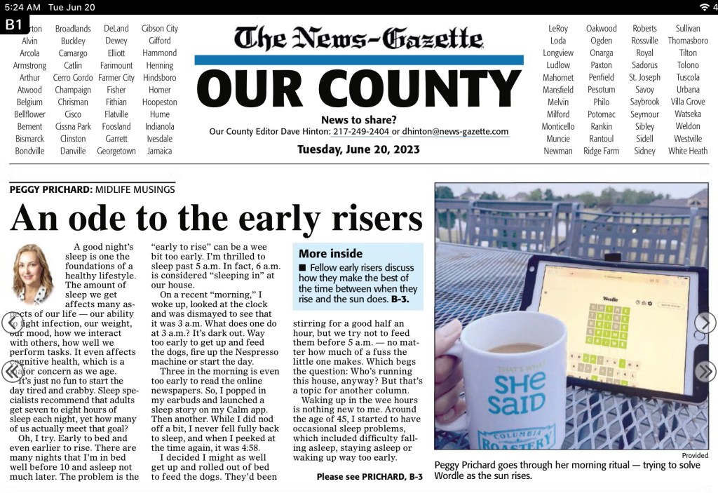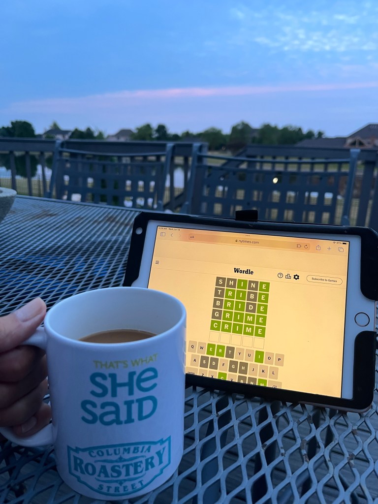 In the meantime, I’ve learned to embrace the early mornings. Since I’m up, I might as well make the most of it. I’ll brew my coffee, read my favorite news sources and see how many tries it takes to solve the Wordle.