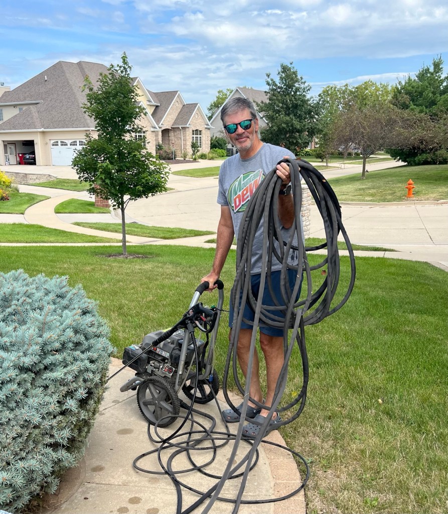 He’s also had his first “retired coffee” with the guys – and returned with a borrowed power washer he promptly put to use. Our driveway and front porch are spotless!